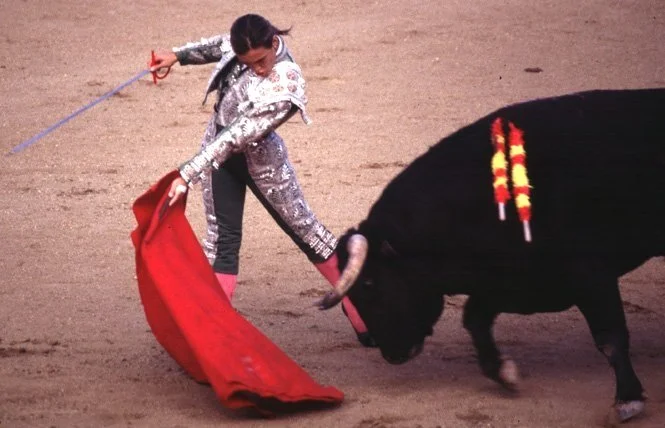 Her manager, Simon Casas, treated relatively kindly in ‘Mujer y Torero’ (although she does point out his interest in her waned as he took on two new charges - the veteran Ortega Cano and the novillero Alberto Ramírez), later claimed that Cristina lacked the strength needed to execute the suerte de matar successfully. Whilst acknowledging she had a weakness with the sword, Cristina sees things differently: “Going in for the kill, everything in my head worsened. Truly, I believe I was never able to overcome this, knowing for certain that the secret of killing bulls well has nothing to do with strength. If people only knew how little is involved in placing the sword if the phases of the suerte are done well and you hit the right spot! […] Everything comes down to one’s technical skill and having confidence in yourself at such a critical moment […] Despite training in it a thousand and one times - much more than any other suerte - I never got the hang of it […] At no point in my career did I come across the formula for going in to kill with sufficient decision.”