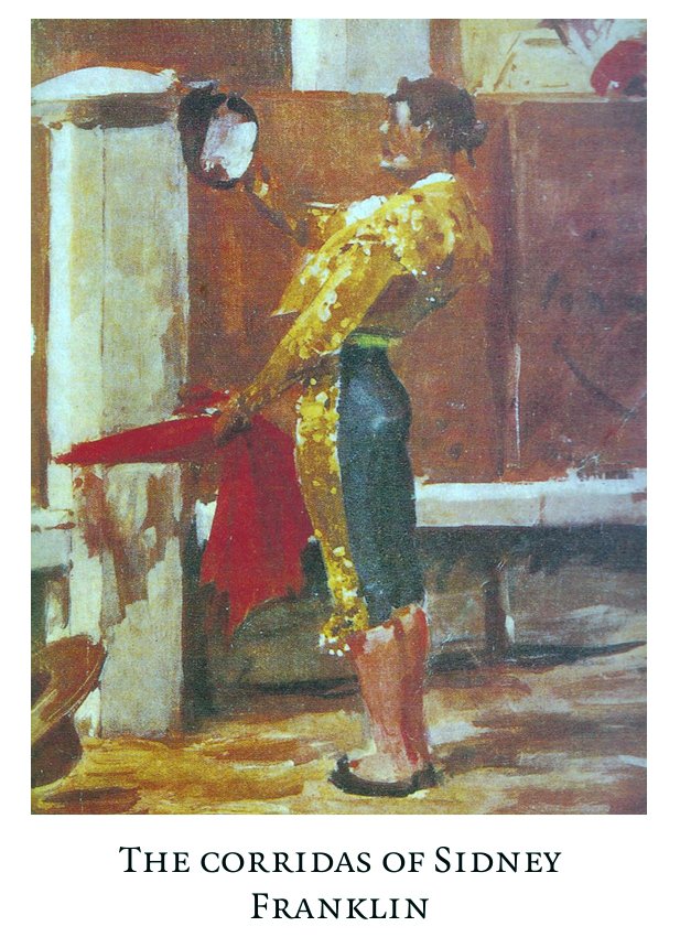 Although he continued to appear off and on in Mexico over the next few years and returned to Spain in 1945 to take the alternativa in Madrid’s Las Ventas on July 18 in a charity corrida for the fascist Frente de Juventudes, Sidney’s serious attempt to establish himself as a torero was effectively over, with just the occasional corrida thereafter. It was a shame how it ended, for the evidence of his 1929 and 1930 seasons indicates that Hemingway’s comments in the ‘Death in the Afternoon’ afterword were not that far off the mark. Franklin was a promising novillero, and, with more application and opportunities, could have progressed and taken the alternativa sooner. As Ivan Moseley summarises: “By documenting what [Franklin] actually did, [I] show how remarkable his achievement was. With very little formal training, he appeared — over a relatively short time — in some of the most important bullrings of several countries, with variable degrees of success, but on occasion eliciting genuine praise from experts who might otherwise have regarded him solely as an upstart, singlemindedly self-promoting foreigner.”